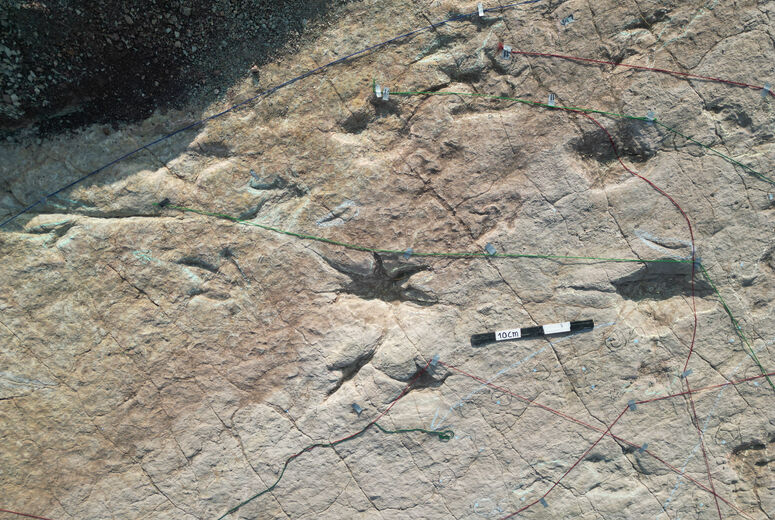 The team also found more tail traces than all other parts of the world combined. Many of those traces are winding grooves that link several footprints, showing that the animals sometimes lowered their tails and dragged them, possibly to stay balanced on soft ground.