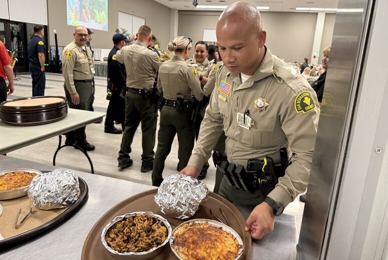 San Bernardino County Sheriff's deputies volunteered as waitstaff, collecting tips that were donated back to LLUCH